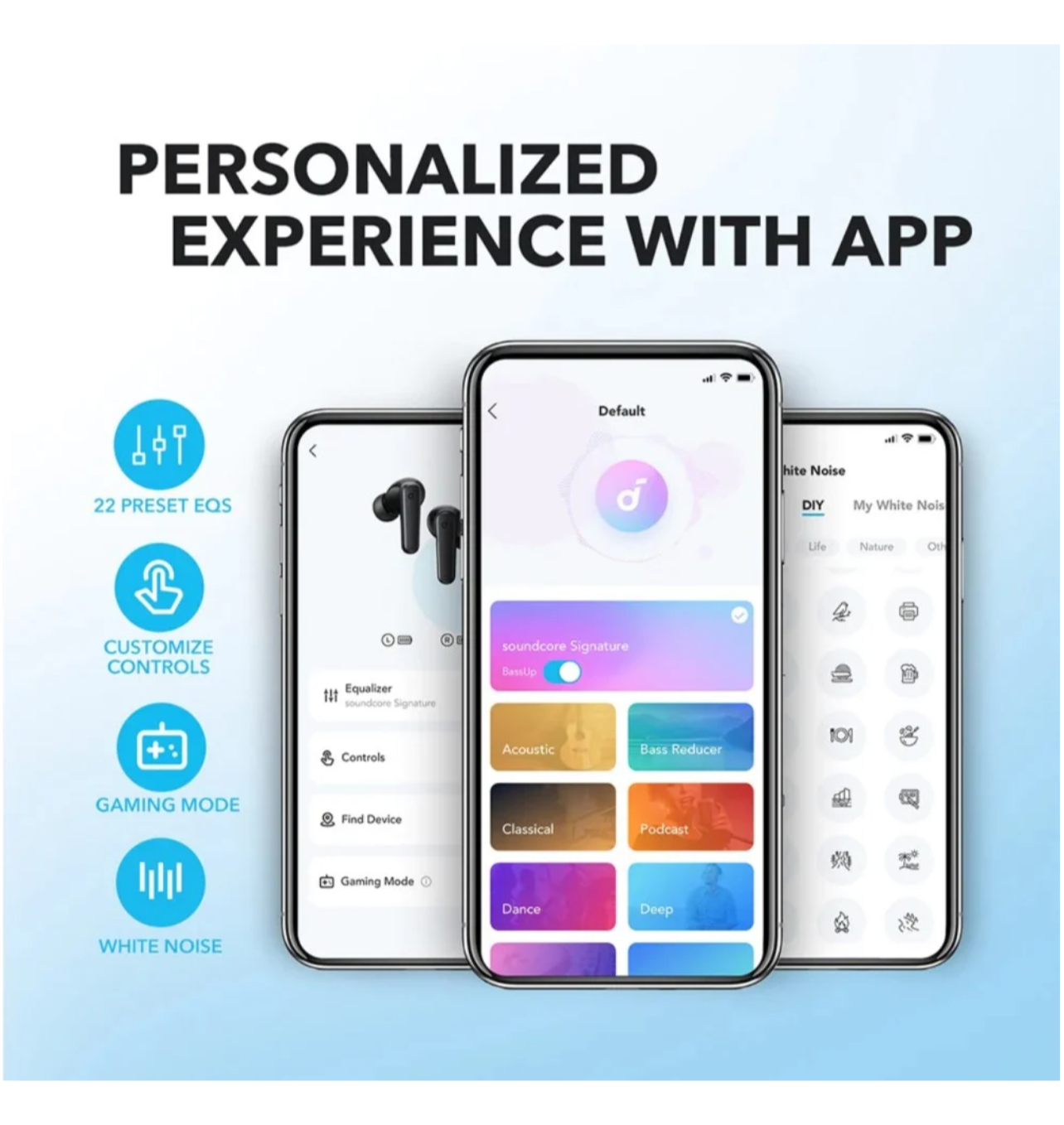 نقدم لكم سماعات Anker Soundcore R50i، حيث يلتقي الصوت الاستثنائي مع التصميم الأنيق. انغمس في عالم من الصوت الغني والحيوي مع سماعات الأذن اللاسلكية المتطورة هذه. استمتع بحرية الصوت الحقيقية أثناء تحررك من الأسلاك المتشابكة. يوفر Soundcore R50i اتصالاً سلسًا بتقنية Bluetooth، مما يسمح لك بالاتصال بأجهزتك المفضلة دون عناء. سواء كنت تمارس الرياضة أو تتنقل أو تستمتع فقط بأغانيك المفضلة، توفر لك سماعات الأذن هذه تجربة لاسلكية لا مثيل لها. تم تجهيز R50i بتكنولوجيا صوتية متقدمة، مما يوفر جودة صوت لا مثيل لها. بفضل محركات الديناميكية مقاس 10 مم المصممة بدقة، يتم إعادة إنتاج كل نغمة ونبضة بوضوح وعمق مذهلين. اشعر بالموسيقى تنبض بالحياة حيث تلتقط سماعات الأذن كل الفروق الدقيقة، مما يضمن تجربة استماع غامرة ومذهلة. تم تصميم سماعات الأذن R50i لتوفير الراحة والمتانة، وتتميز بتصميم مريح وخفيف الوزن يتناسب بشكل مريح مع أذنيك. توفر أطراف الأذن الناعمة المصنوعة من السيليكون ملاءمة آمنة، بينما يضيف اللون الأسود غير اللامع الأنيق لمسة من الرقي. سواء كنت في رحلة طويلة أو جلسة تمرين مكثفة، فإن سماعات الأذن هذه تبقى في مكانها بشكل مريح، مما يتيح لك الاستمتاع بالموسيقى دون انقطاع. سماعات Anker Soundcore R50i هي أكثر من مجرد جهاز استماع. بفضل عناصر التحكم باللمس البديهية، يمكنك إدارة الموسيقى والرد على المكالمات وتنشيط المساعدين الصوتيين بسهولة بمجرد نقرة بسيطة. ابق على اتصال دون أن تفوتك أي لحظة، مع إبقاء هاتفك في مكان آمن.